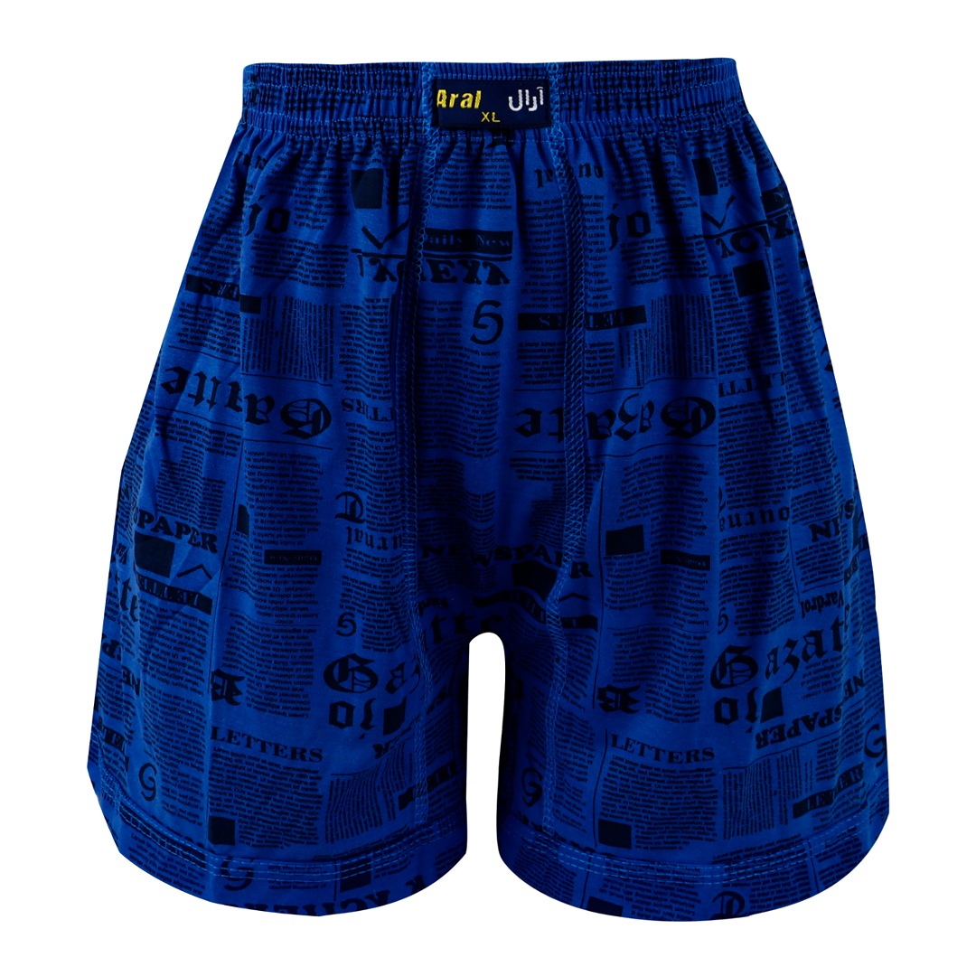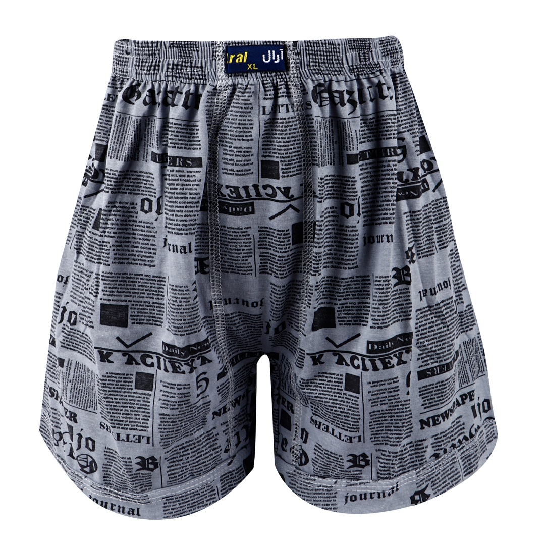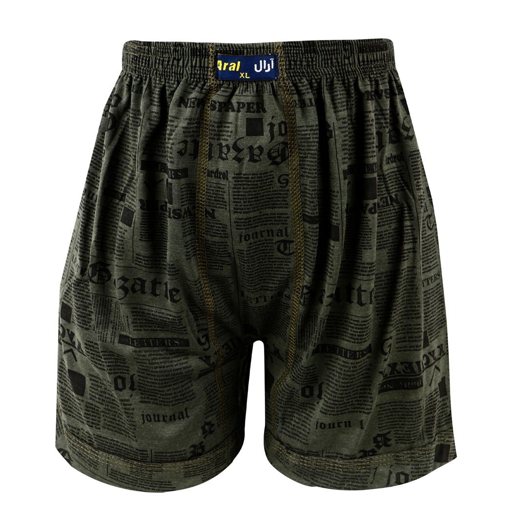 شورت پادار مردانه نخی آرال مدل چاپ روزنامه ای و ابری کد P700 بسته ۶ عددی