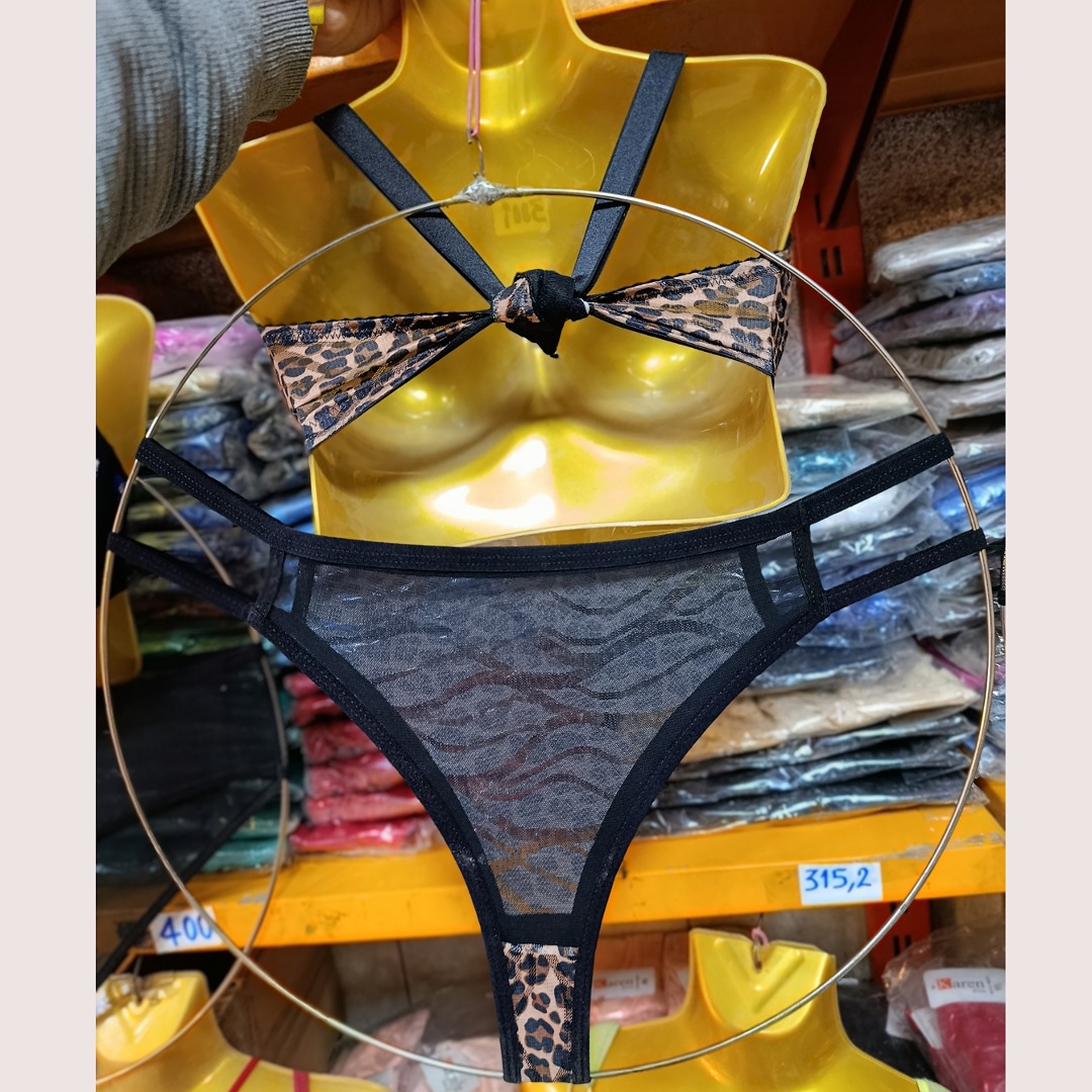ست شورت و سوتین برند کارن طرح پلنگی توری فنردار کد 2048